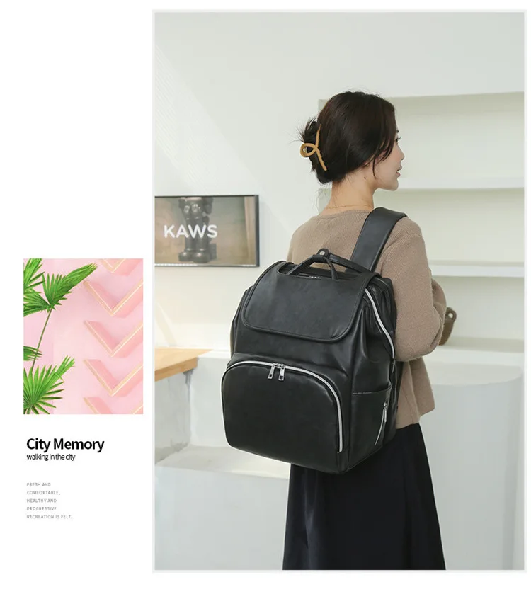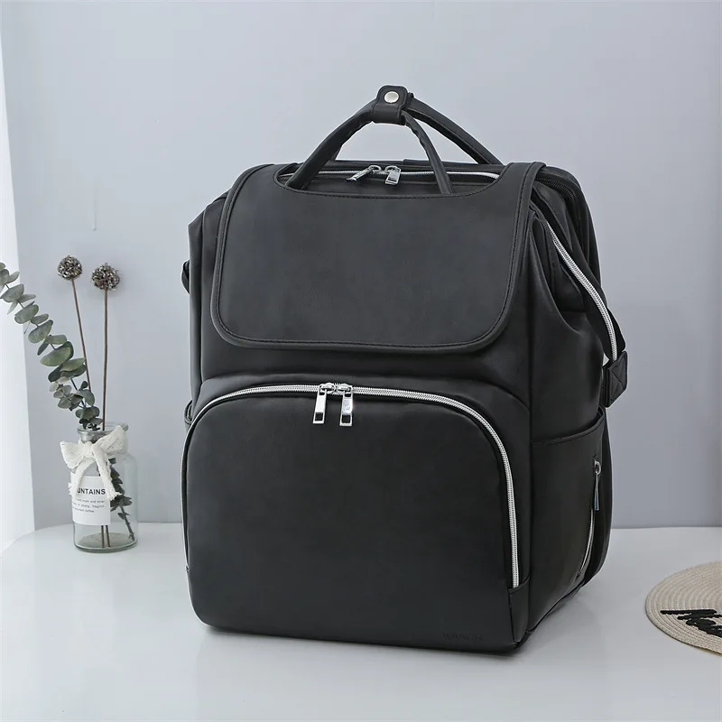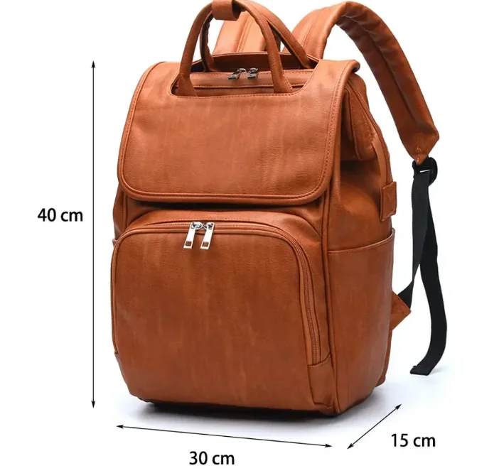 Multi Functional Mommy Bag PU Leather Diaper Bag Backpack Unisex Baby with Changing Mat Large Capacity Travel Diaper Backpack